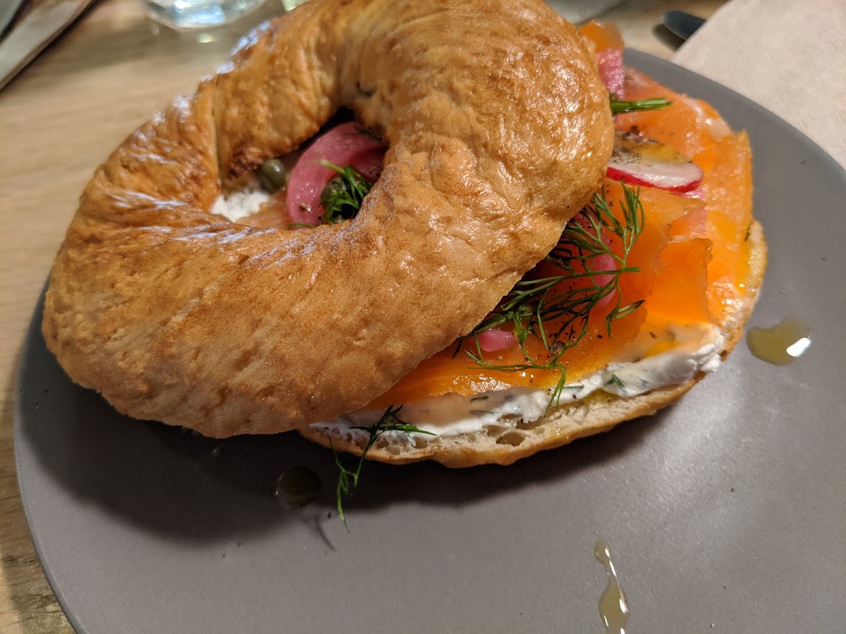 While it was a little pricy, it was absolutely worth it. The quality was so good and they had house made gluten free bagels, which is a dream as someone who doesn't eat gluten. Plus my chai was amazing. Very beautiful spot and the workers had great energy.